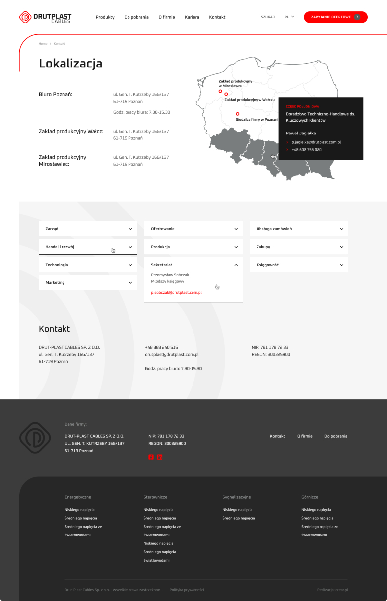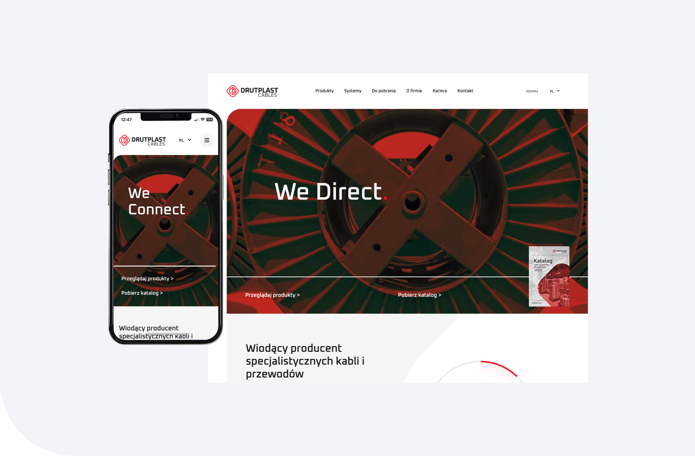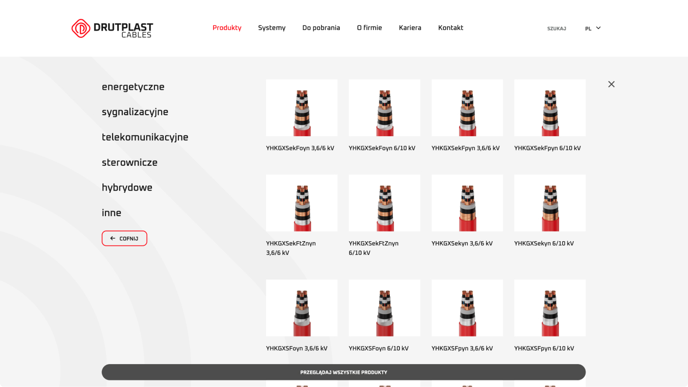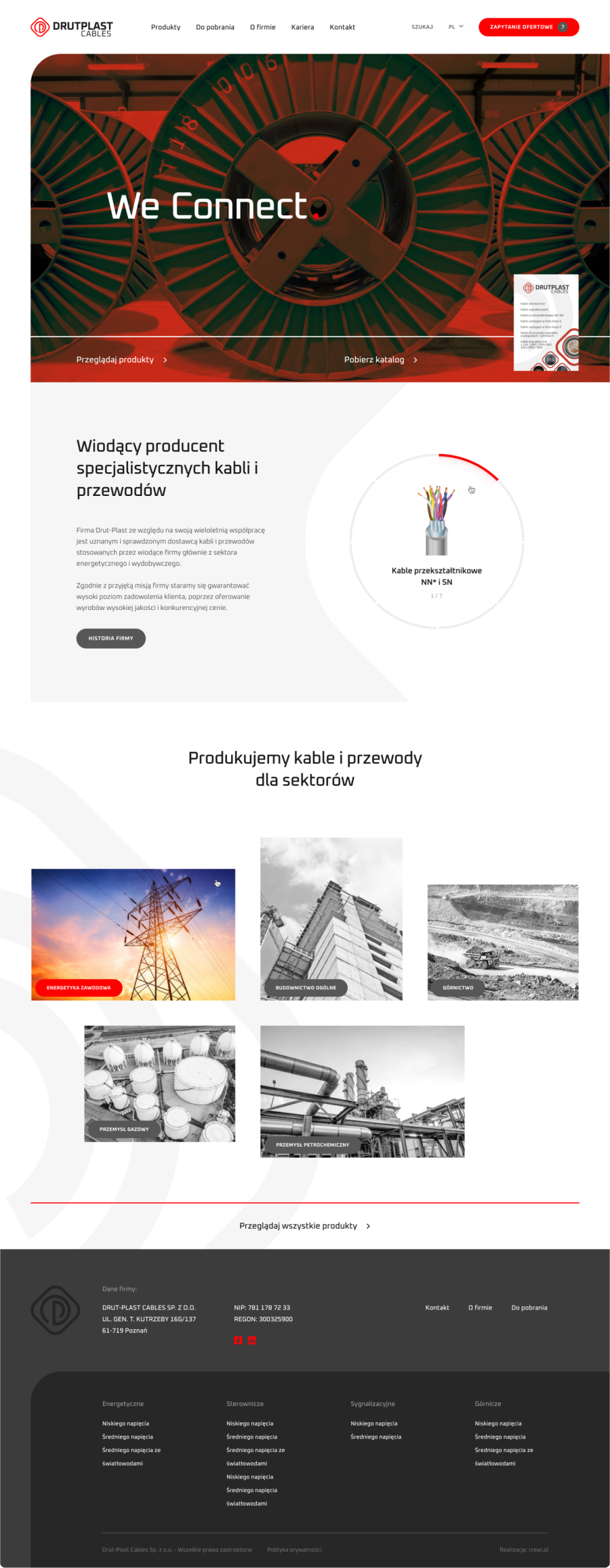 Projekt graficzny strony Drut-Plast Cables został stworzony z myślą o podkreśleniu profesjonalizmu i innowacyjności firmy, w pełnej harmonii z jej logo i identyfikacją wizualną.