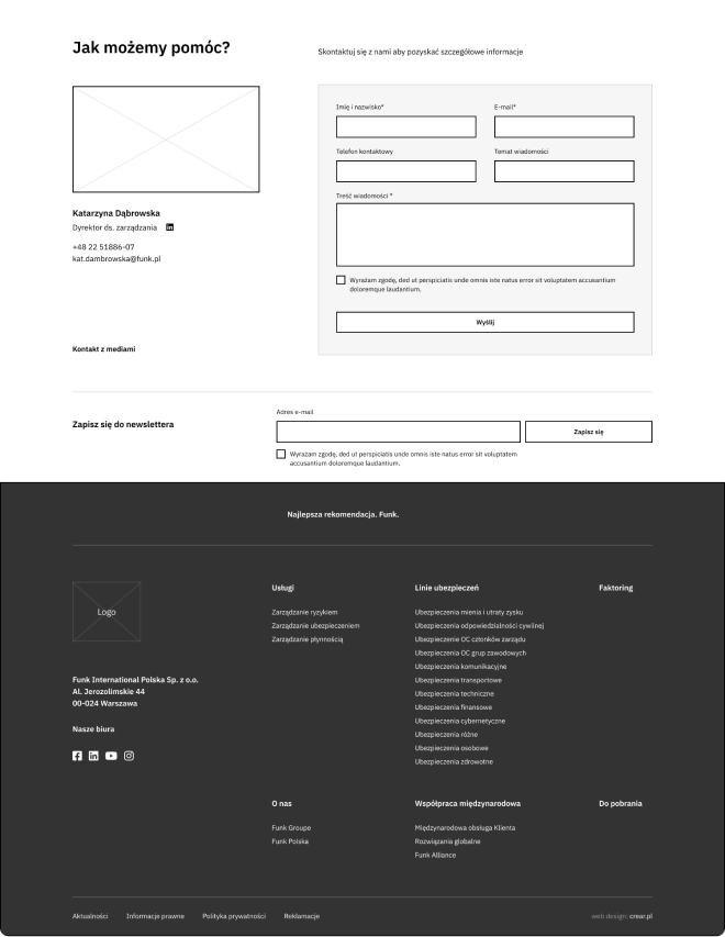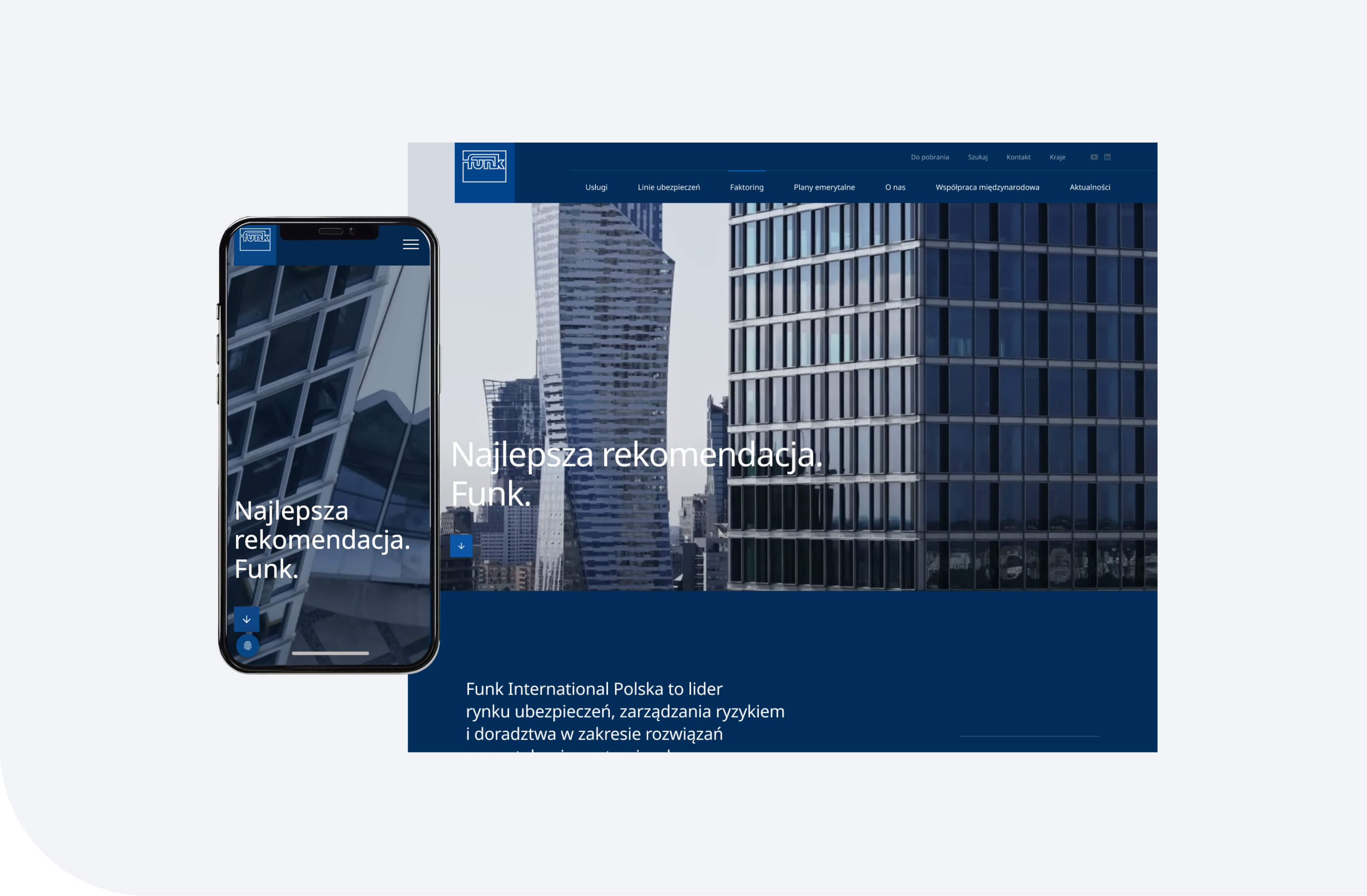 Projekt graficzny strony Funk.pl został zaprojektowany z myślą o profesjonalnym i nowoczesnym wizerunku, który odzwierciedla prestiż i doświadczenie firmy w branży brokerskiej.