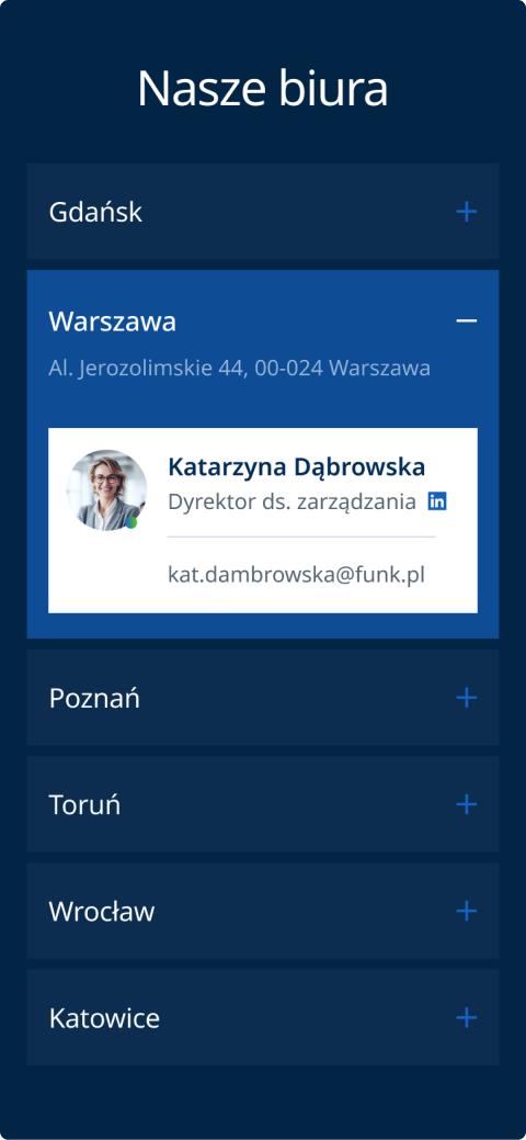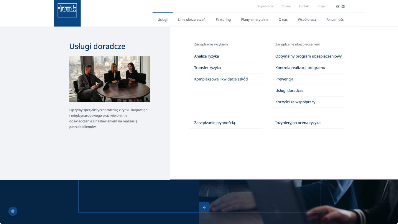 Funk.pl to wiodąca kancelaria brokerska specjalizująca się w ubezpieczeniach, zarządzaniu ryzykiem oraz doradztwie w zakresie rozwiązań emerytalno-inwestycyjnych.